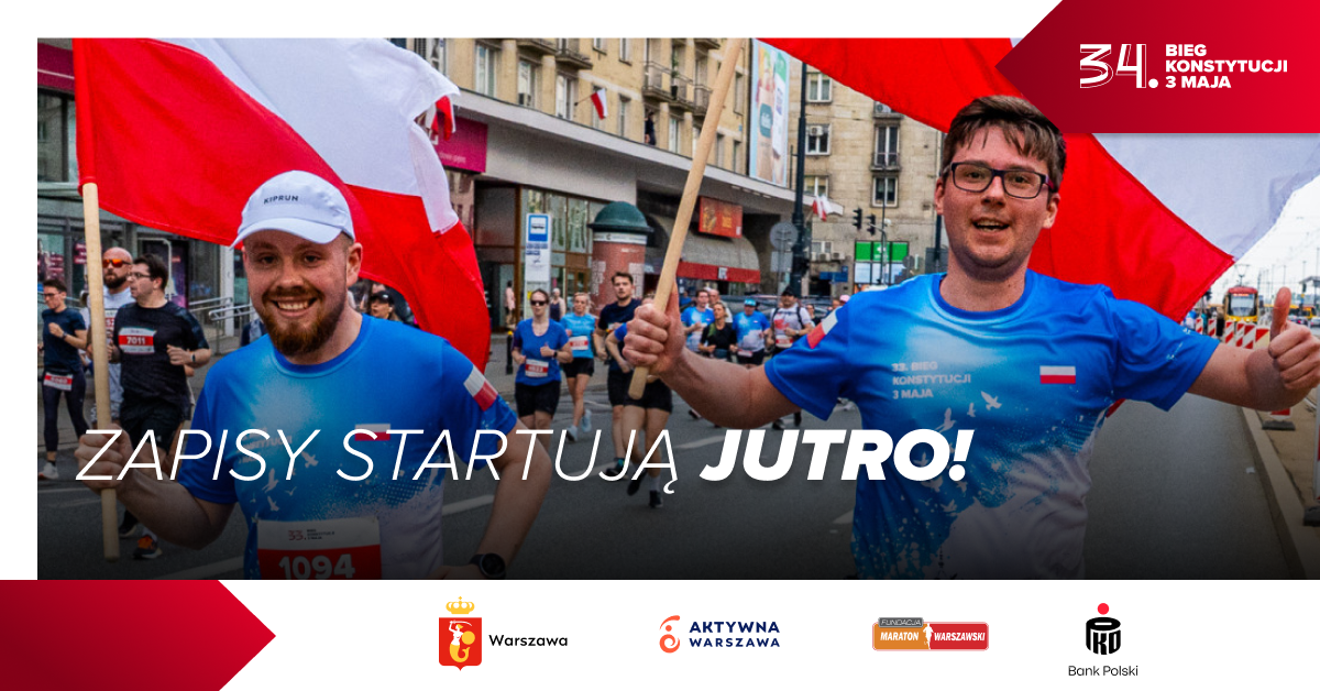 Już jutro – 2 kwietnia ruszają zapisy na Bieg Konstytucji 3 Maja! Jeśli planujecie aktywnie spędzić majówkę i być częścią jednego z najbardziej radosnych biegów w Warszawie – wiecie co robić!